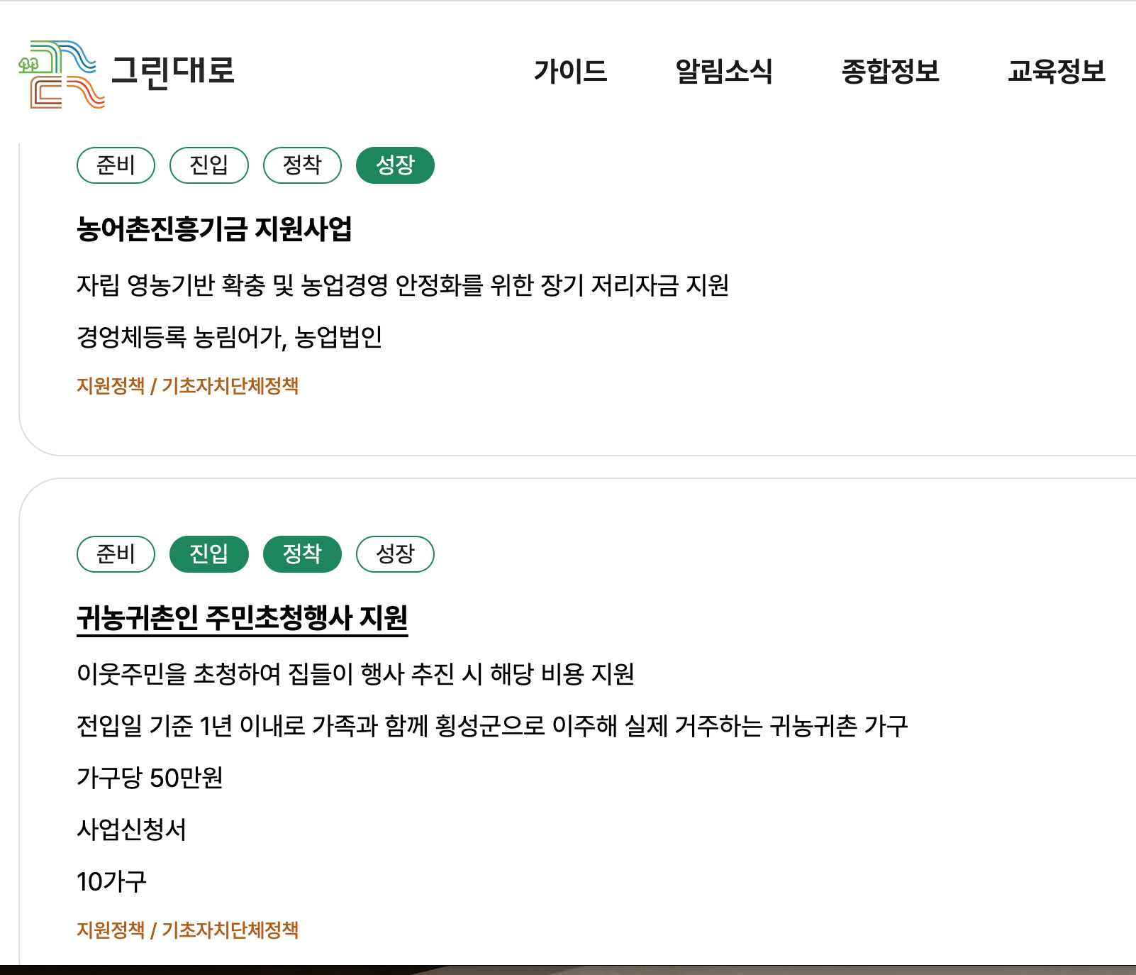 특히 청년 귀농인의 경우(만 18세~39세), 별도의 청년 창업농 지원사업도 병행 가능해 이중 혜택을 받을 수 있는 점도 꼭 체크해야 합니다.