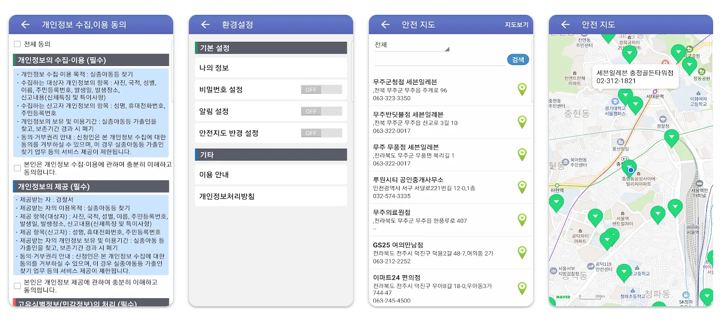 - 안전드림 앱: https://play.google.com/store/apps/details?id=com.bluewave.policeapp&hl=ko