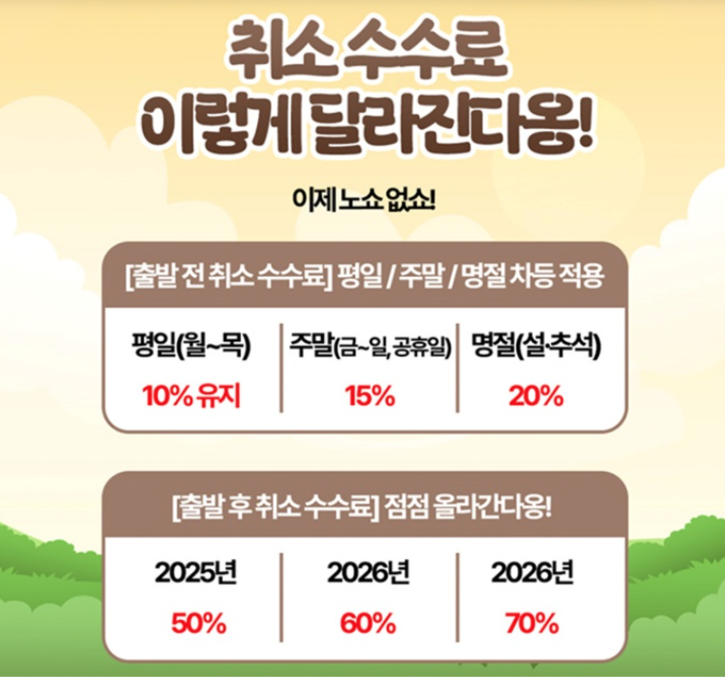 | 출발 전 취소 | 최대 10% | 최대 20% |