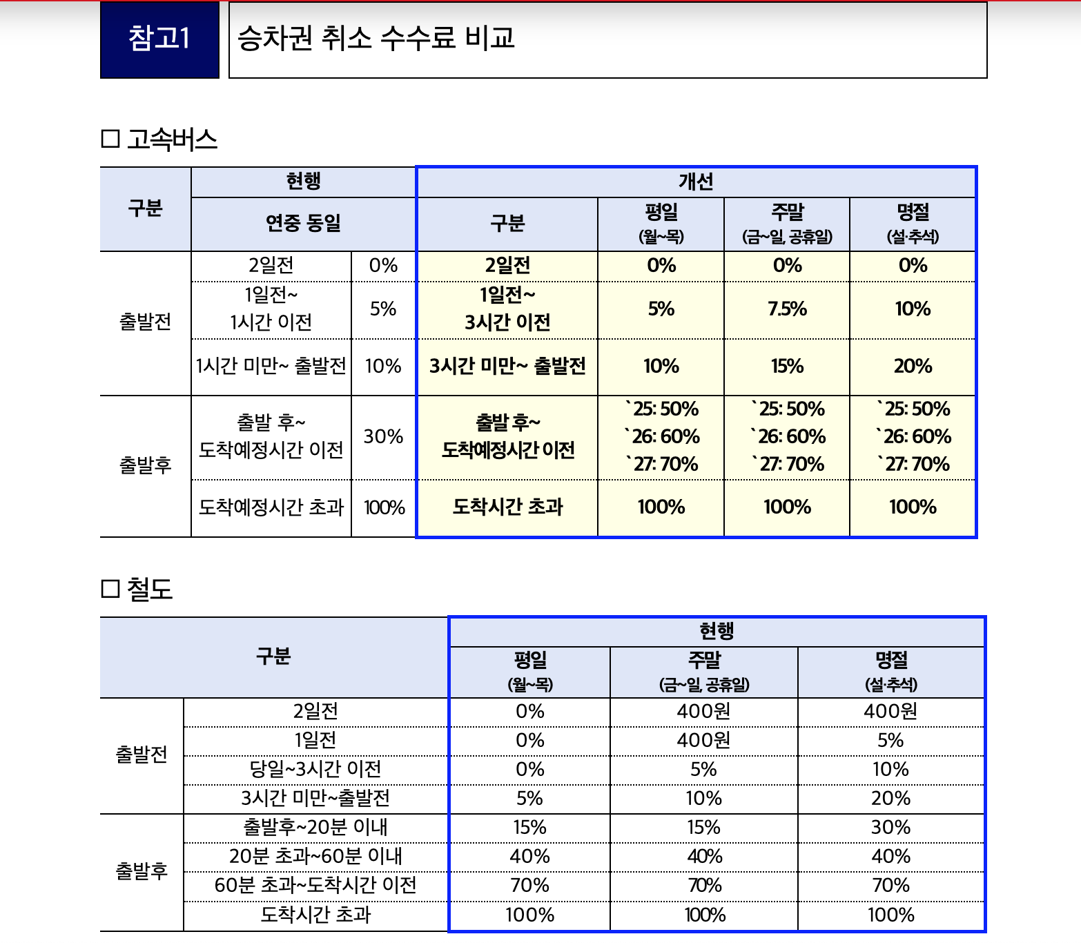 기존 수수료 기준은 비교적 관대한 편이었습니다. 하지만 예매 후 무분별한 취소가 늘면서 2025년부터 아래와 같이 변경됩니다.