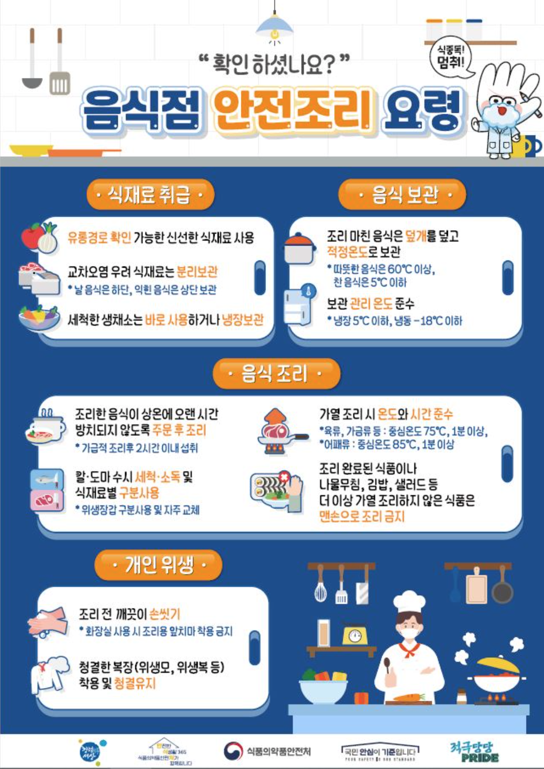 실제로 식품의약품안전처는 “여름철 식중독 예방 6대 요령”을 통해 손 씻기, 익혀 먹기, 세척·소독, 보관온도 준수 등 기본 수칙을 강조하고 있습니다.
