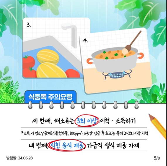 특히 장마철에는 침수, 오염된 물, 조리도구의 위생 문제가 더해지면서 식중독 사고 위험이 증가합니다.