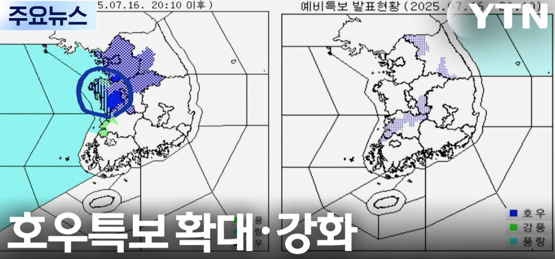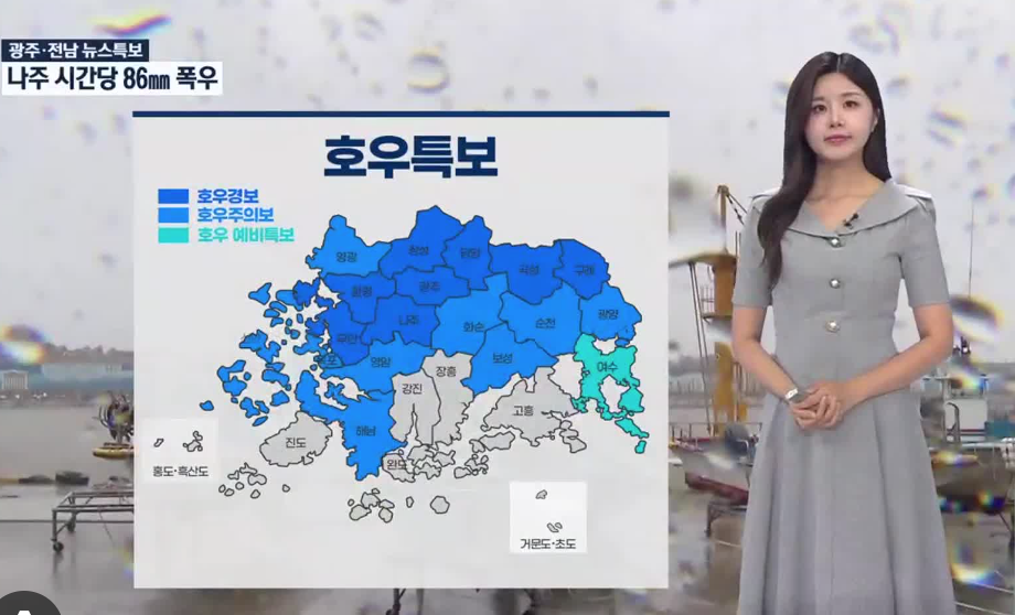 | 전라·경상 북부 | 호우주의보 중, 일부 지역 국지적 집중호우 경고 |