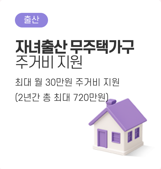서울시는 출산 가구의 주거 안정을 위해 월 최대 30만 원씩 2년간(기본) 최대 720만 원을 지원하는 자녀 출산 무주택가구 주거비 지원사업을 운영합니다.