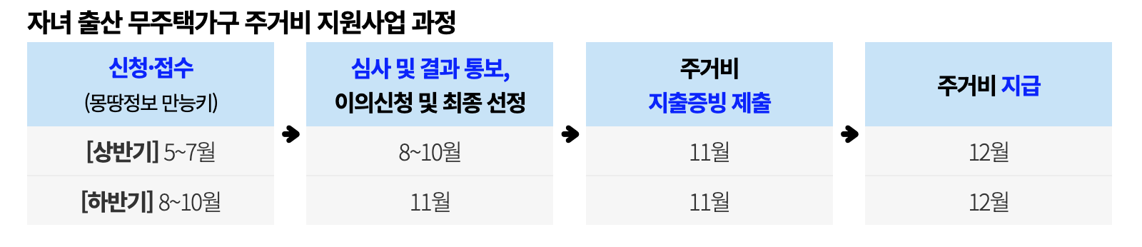 상반기 접수자는 10월, 하반기 접수자는 11월에 결과가 발표되며, 증빙 확인이 완료된 대상자에게는 12월 중 주거비가 지급됩니다.