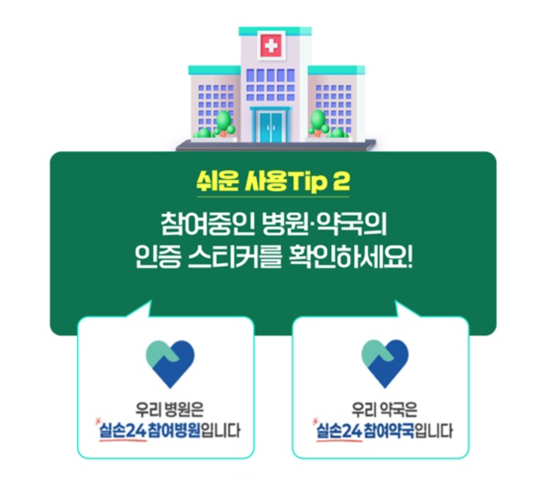 - 병원이나 약국 출입구에 부착된 ‘실손24 인증 스티커’ 확인