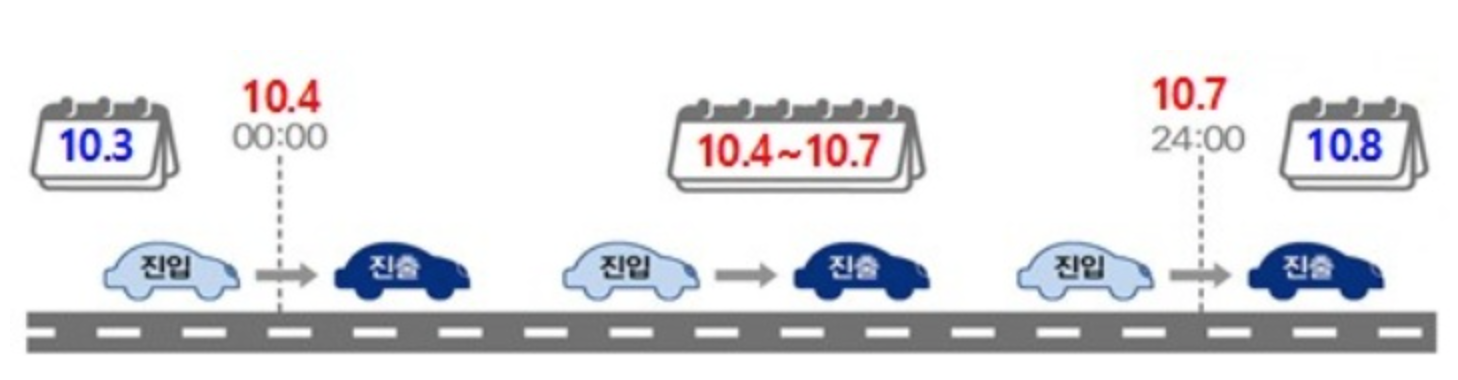 이번 면제 정책은 10월 4일 0시부터 10월 7일 24시까지 총 4일간 적용됩니다.