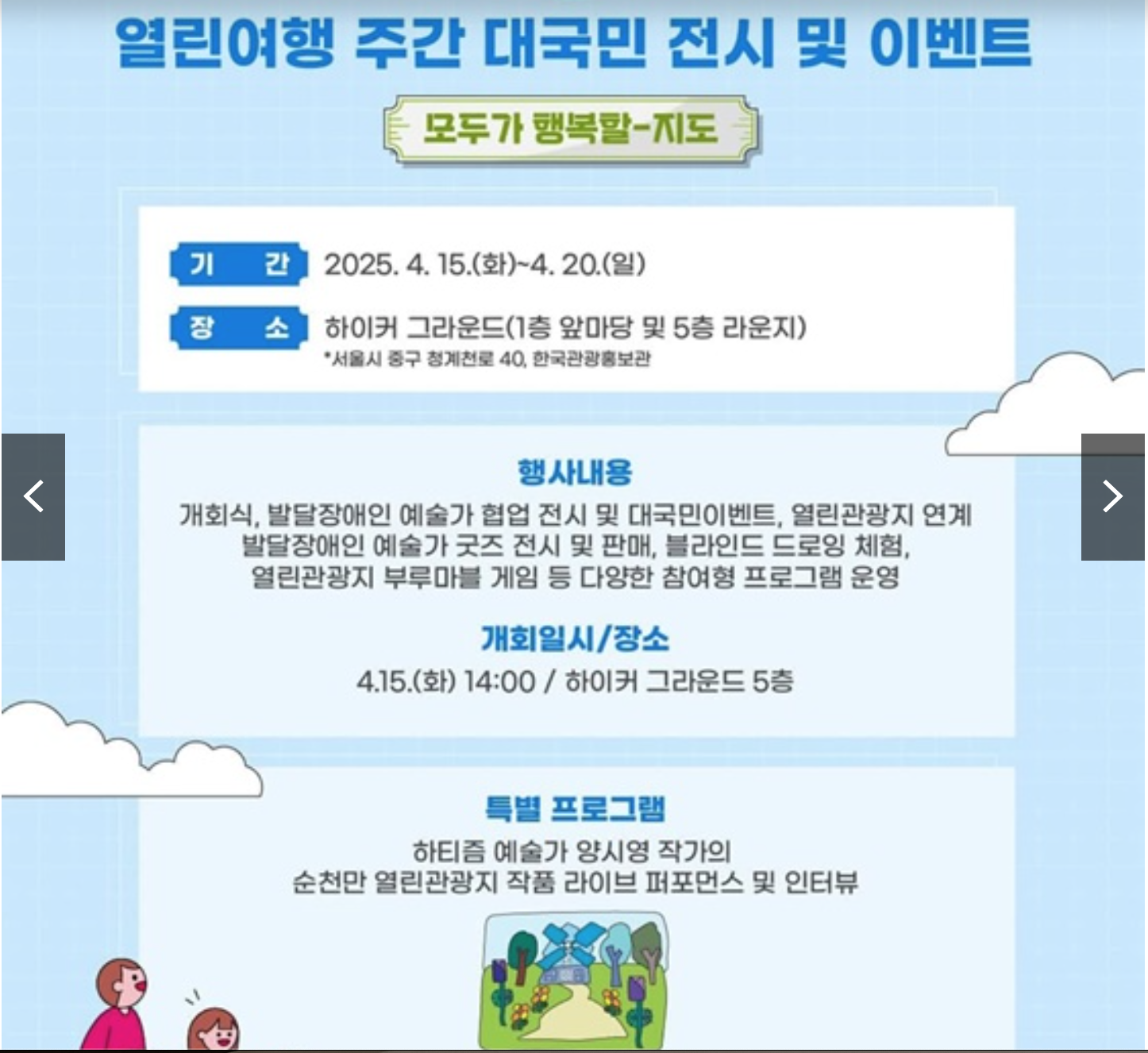 여러분, 2025 열린여행주간에 많은 관심과 참여 부탁드립니다. 모두가 함께하는 여행의 기회를 놓치지 마세요!