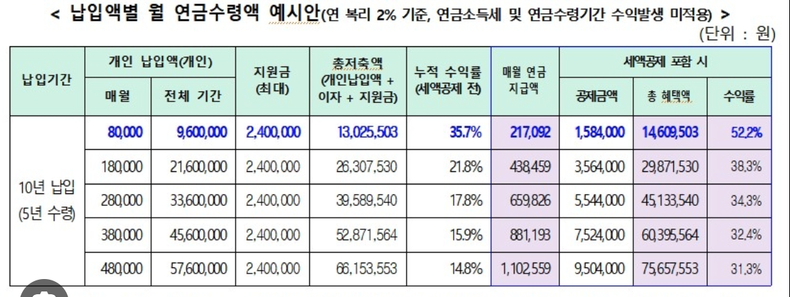 월 8만원이라는 부담 없는 금액으로 노후자금을 마련할 수 있다는 점이 이 제도의 가장 큰 매력 포인트입니다.