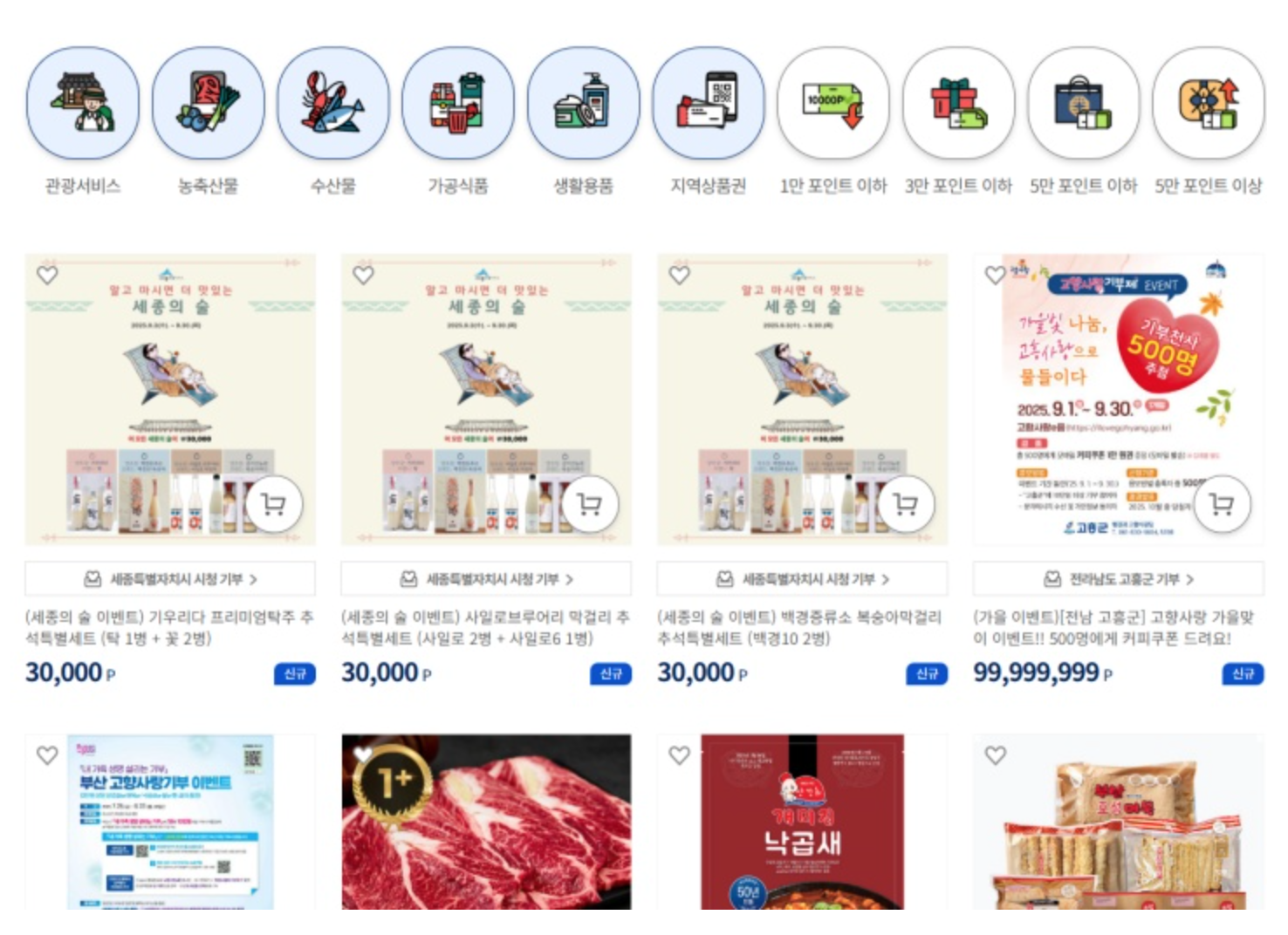 지역 특산물, 생활용품 등 다양한 답례품이 준비되어 있어 기부금의 일부를 체감 혜택으로 돌려받는 느낌을 받을 수 있습니다.