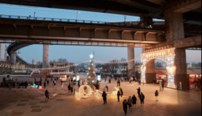 청담대교 교각 아래에는 루미나리에 조명과 쿠키하우스를 배경으로 한 ‘로맨틱 포레스트’가 설치되며, 총 7개의 트리가 숲처럼 연출됩니다.