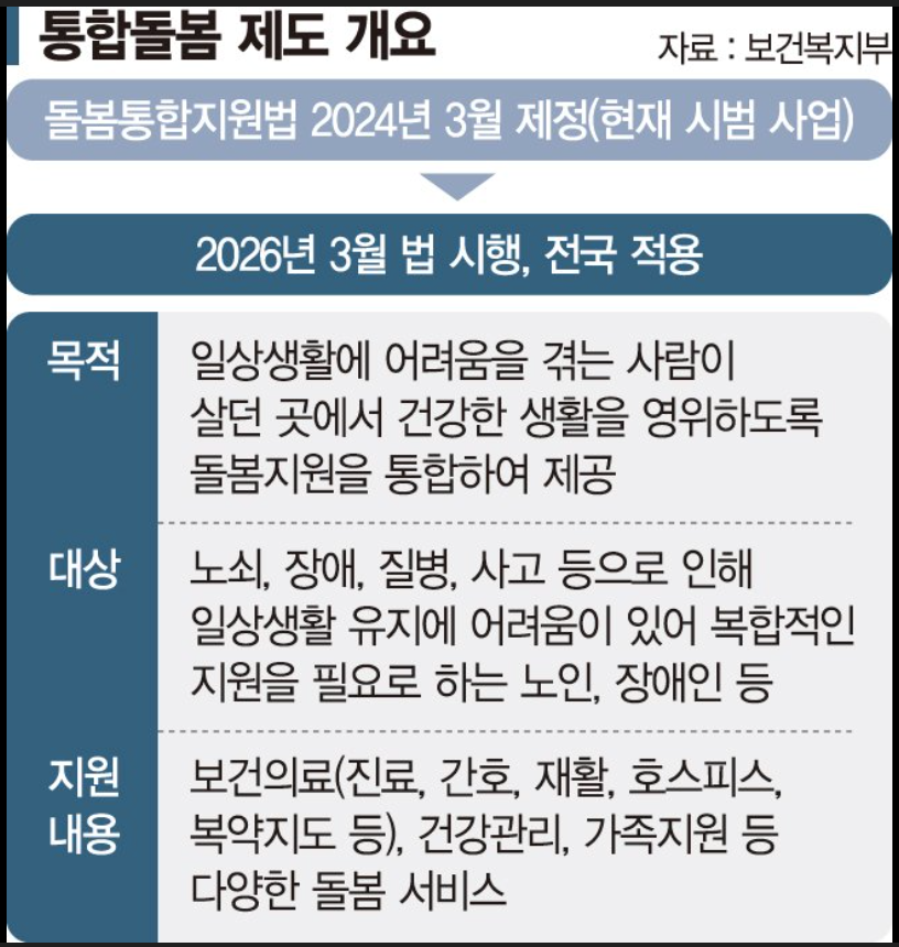 고령화가 빠르게 진행되는 상황에서 통합돌봄 지원법은 단순한 복지정책이 아니라 앞으로 꼭 알아야 할 생활 밀착형 제도라고 볼 수 있습니다.