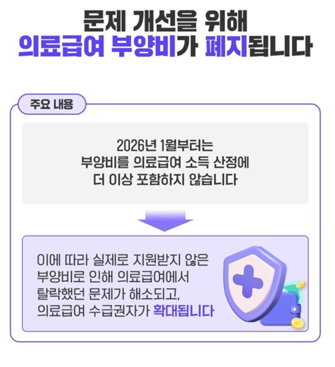 2026년부터 의료급여 제도의 핵심 기준 중 하나였던 부양비 항목이 폐지됩니다.