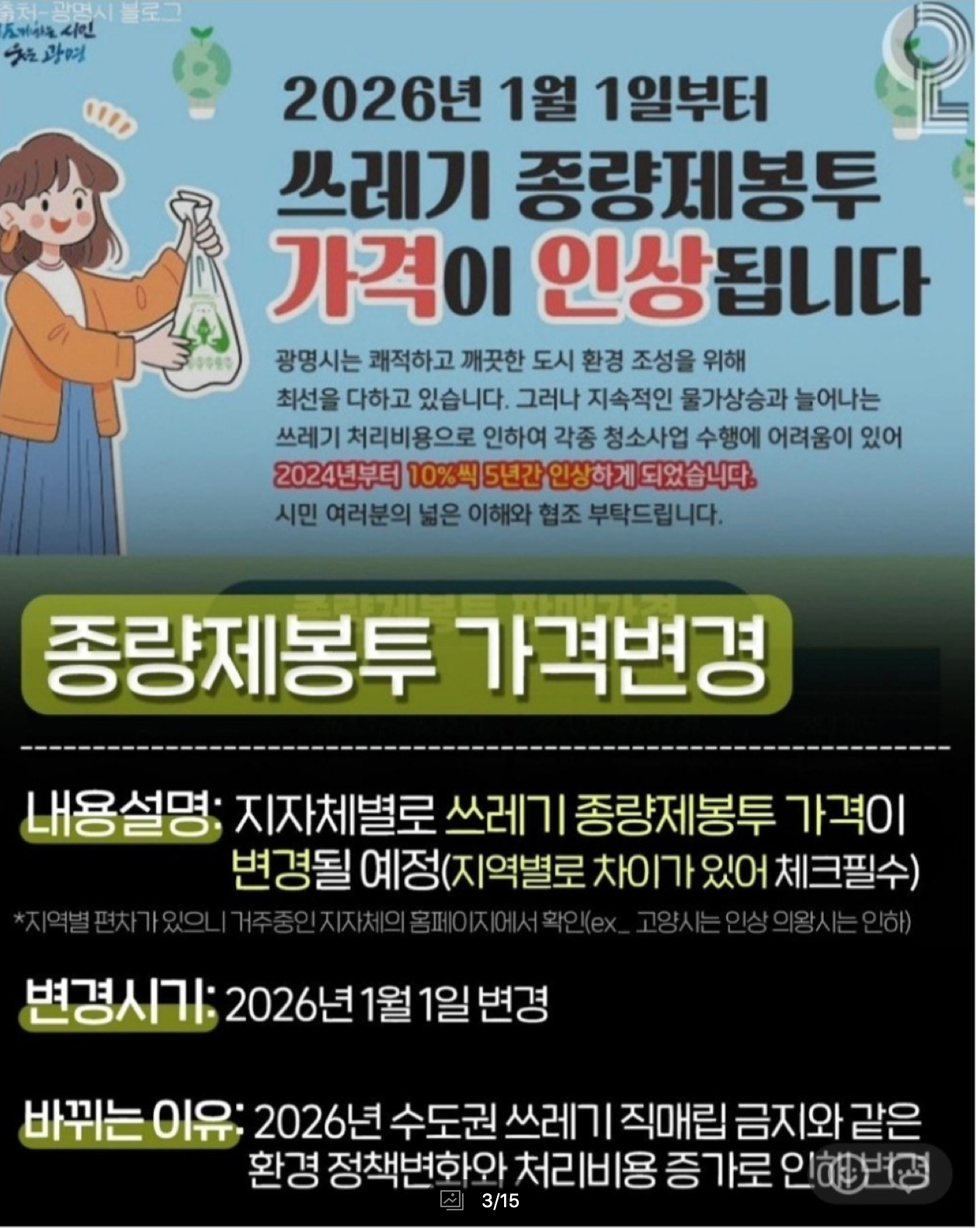 이번 글에서는 2026년 종량제봉투 가격 인상 배경과 예상 인상 폭, 그리고 지역별 차이까지 정리해드립니다.