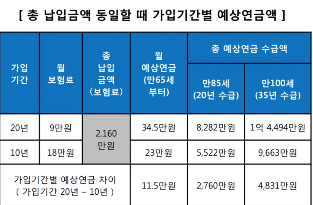 기본연금액 산정 시 반영되는 가입 기간 × 소득 재평가율 구조상, 누적 구간이 길수록 인상 효과가 커지기 때문입니다.
