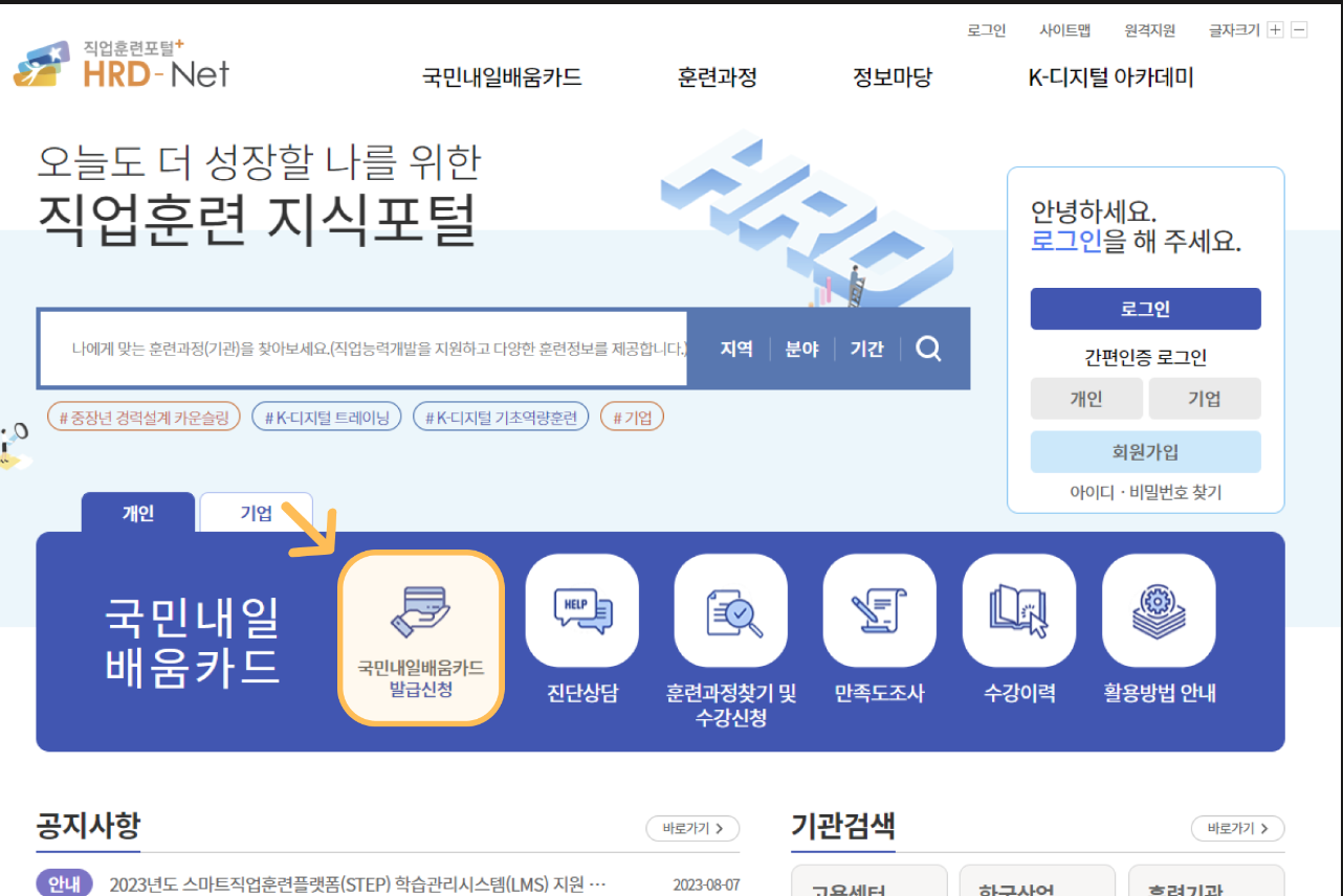국민내일배움카드 신청 방법은 다음과 같습니다.