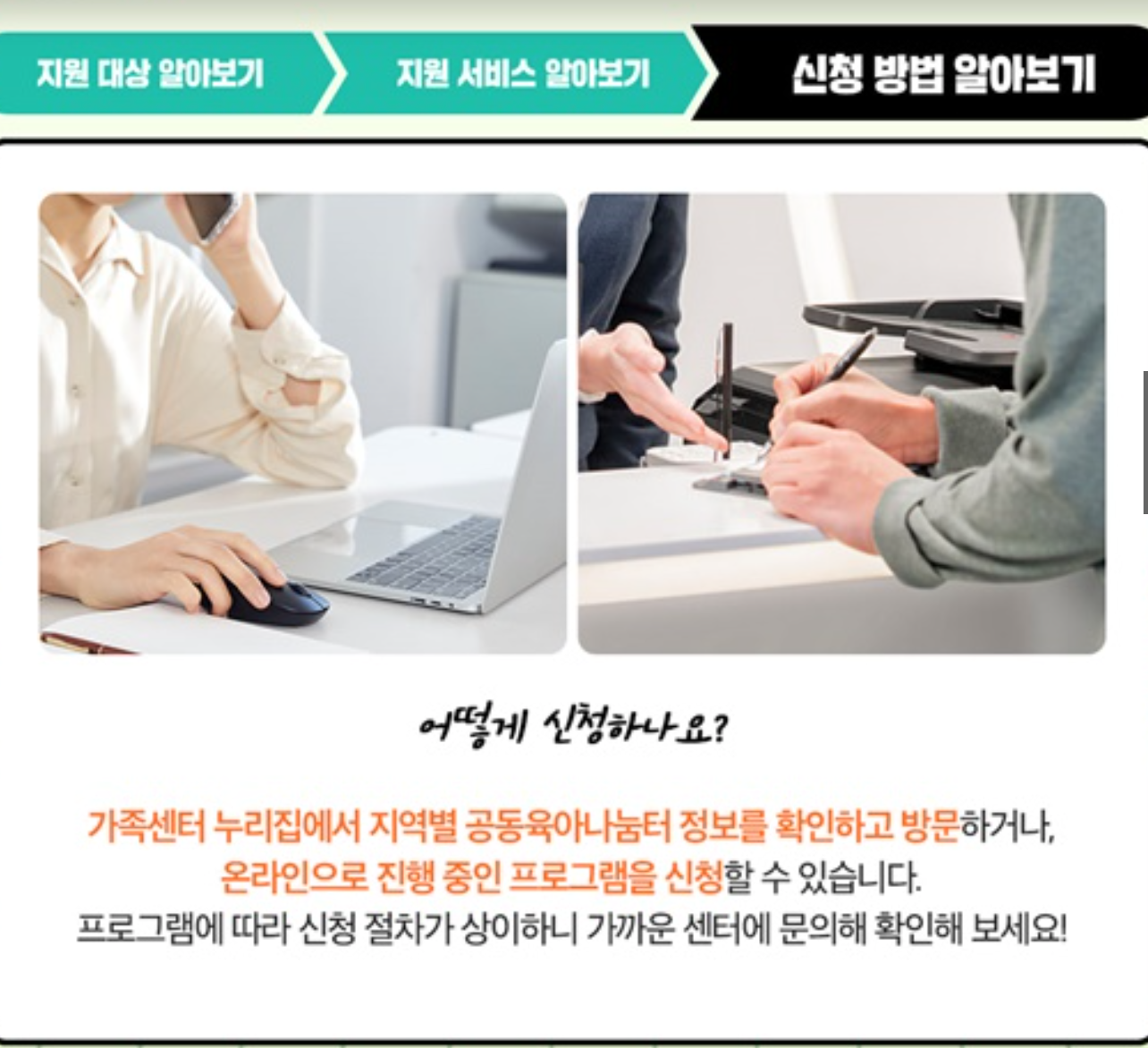 먼저 두 시설 모두 복지로 또는 가족센터 누리집에서 찾고 신청할 수 있습니다.