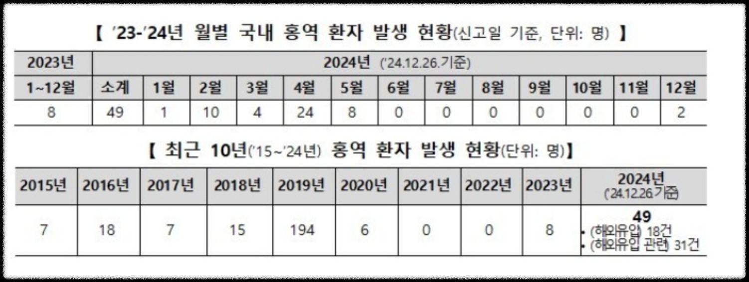 코로나19 시기에는 마스크 착용과 거리두기 덕분에 억제되었지만, 일상 회복 이후 해외여행이 늘고 백신 접종률이 낮아지면서 다시 유행하고 있는 것입니다.