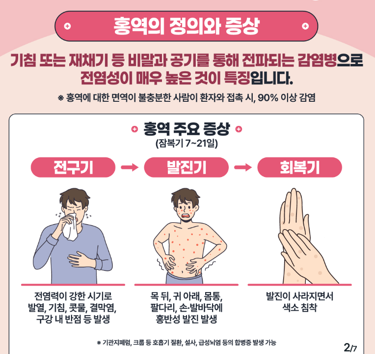 홍역은 바이러스성 전염병으로, 공기만으로도 감염될 만큼 전염성이 매우 강합니다.