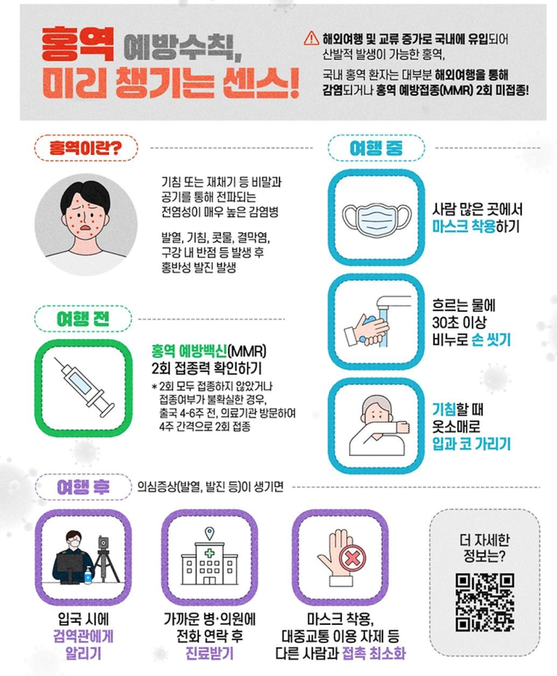 특히 연휴를 맞아 동남아, 유럽 등 홍역 유행 국가를 다녀오는 사람들이 많아지면서, 보건당국은 귀국 후 발열·발진 증상이 있을 경우 즉시 마스크 착용 후 병원에 방문하라고 권고하고 있습니다.