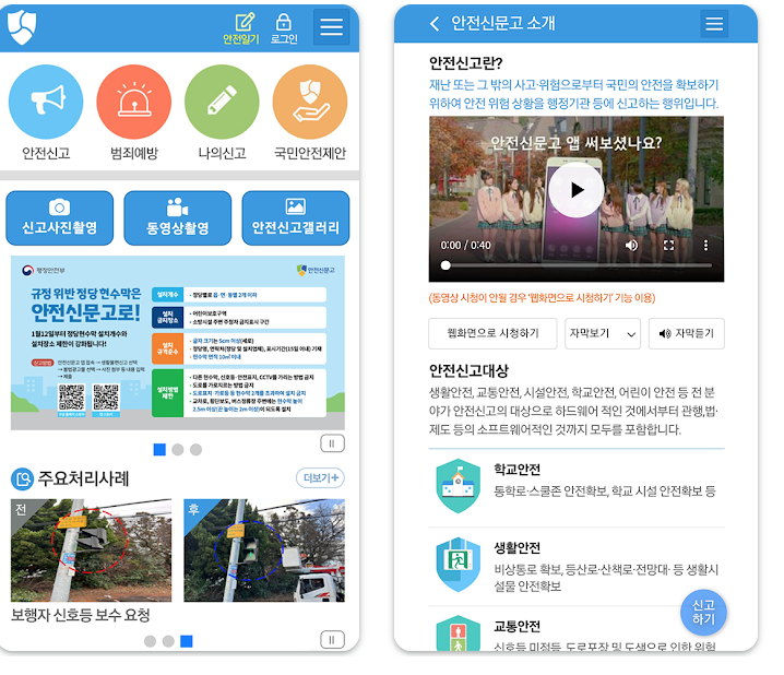 👉 생활 속 위험이 보인다면 지금 안전신문고 홈페이지나 앱을 통해 간편하게 신고해보세요.
