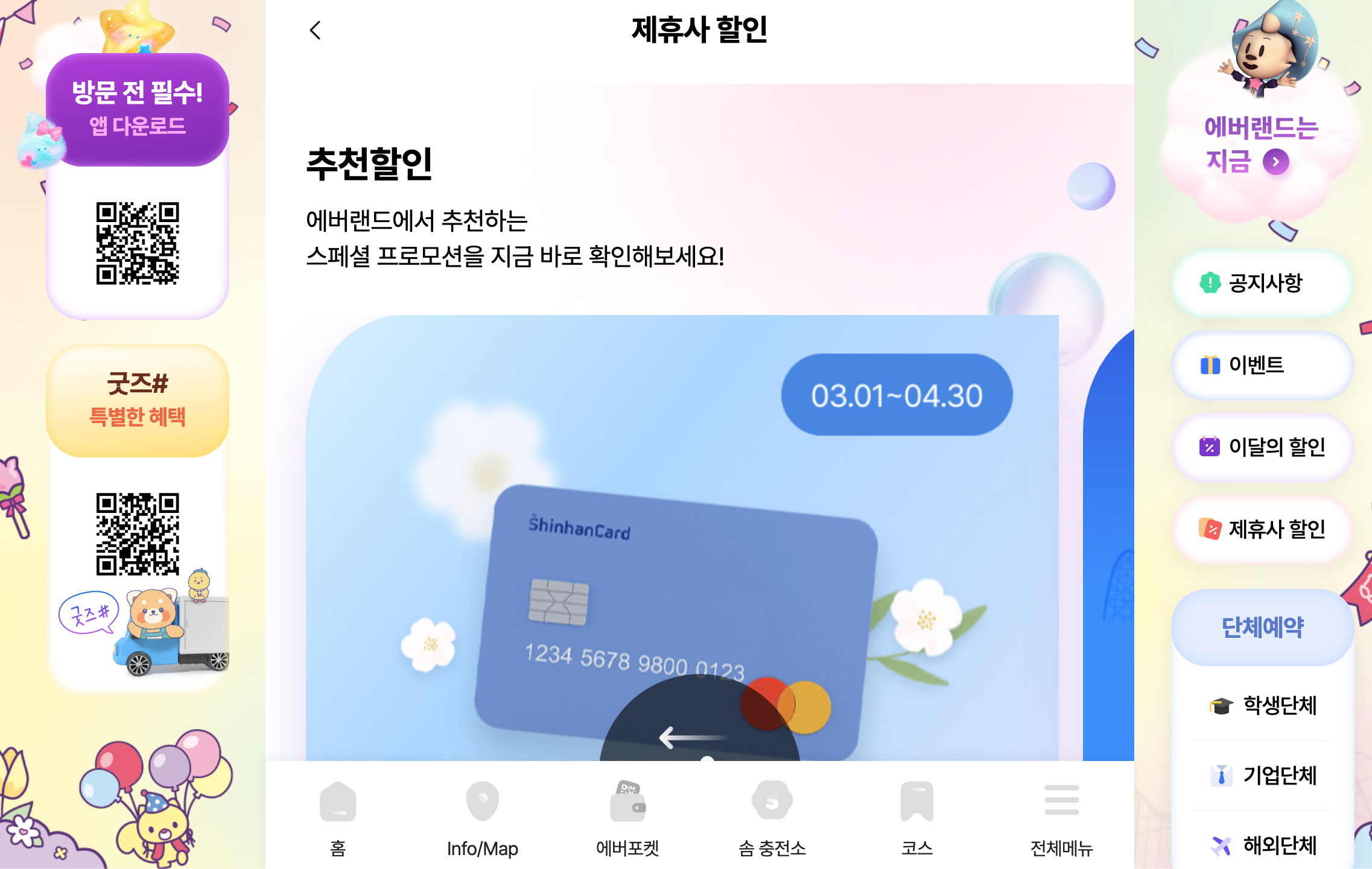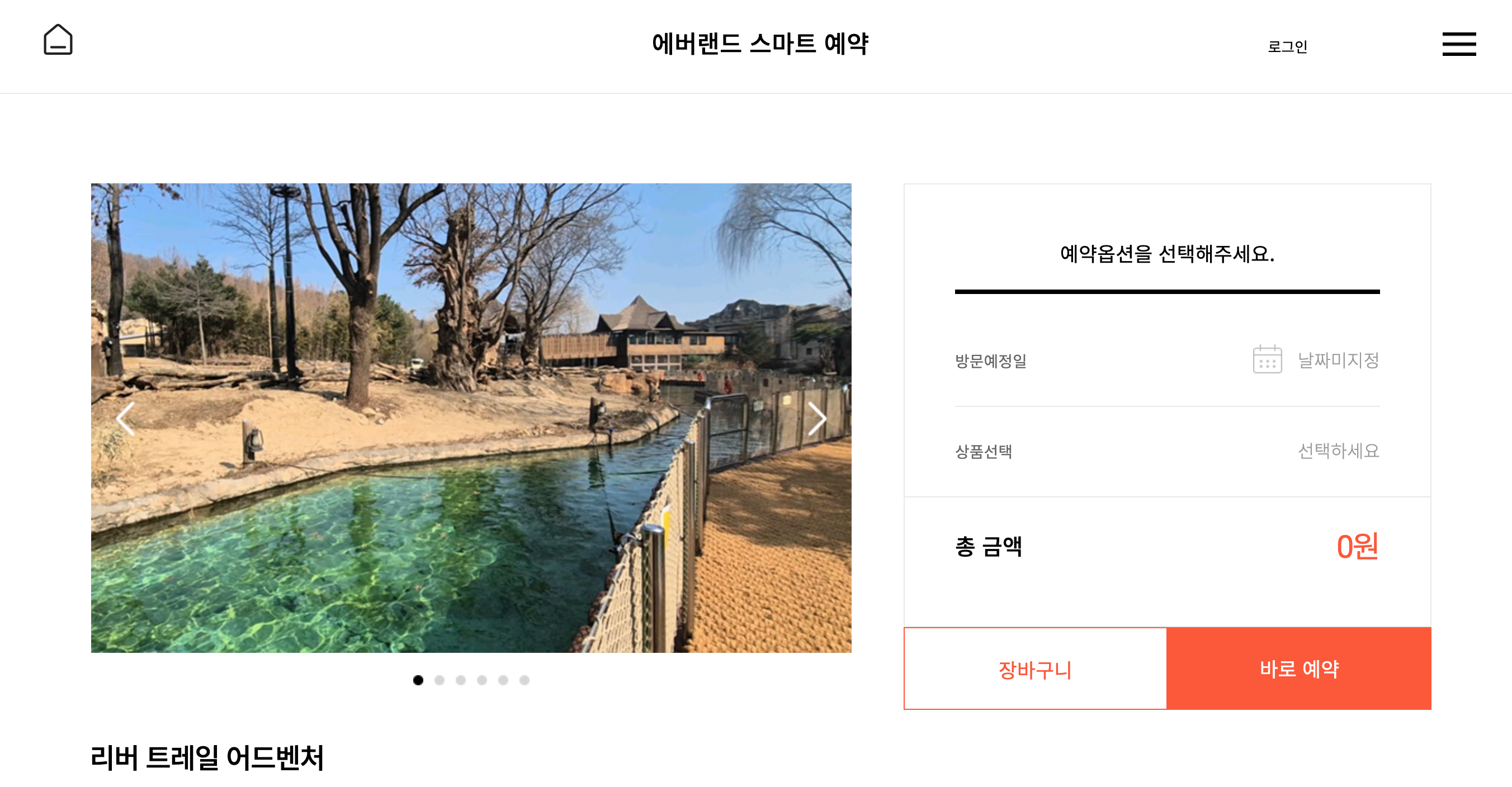 참고: 예약 시 에버랜드 입장권은 별도로 구매해야 하며, 예약 완료 후 30분 이내에 결제하지 않으면 자동 취소되니 유의하시기 바랍니다.