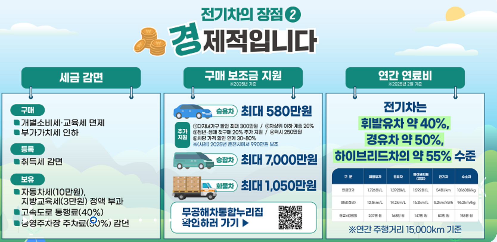 - 전기승용차: 최대 600만 원(국비) + 400만 원(시비)