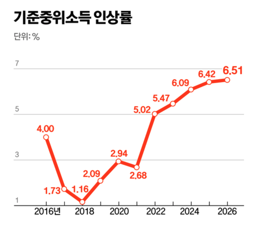 - 2026년 기준 중위소득 인상으로 기초생활수급 문턱 완화