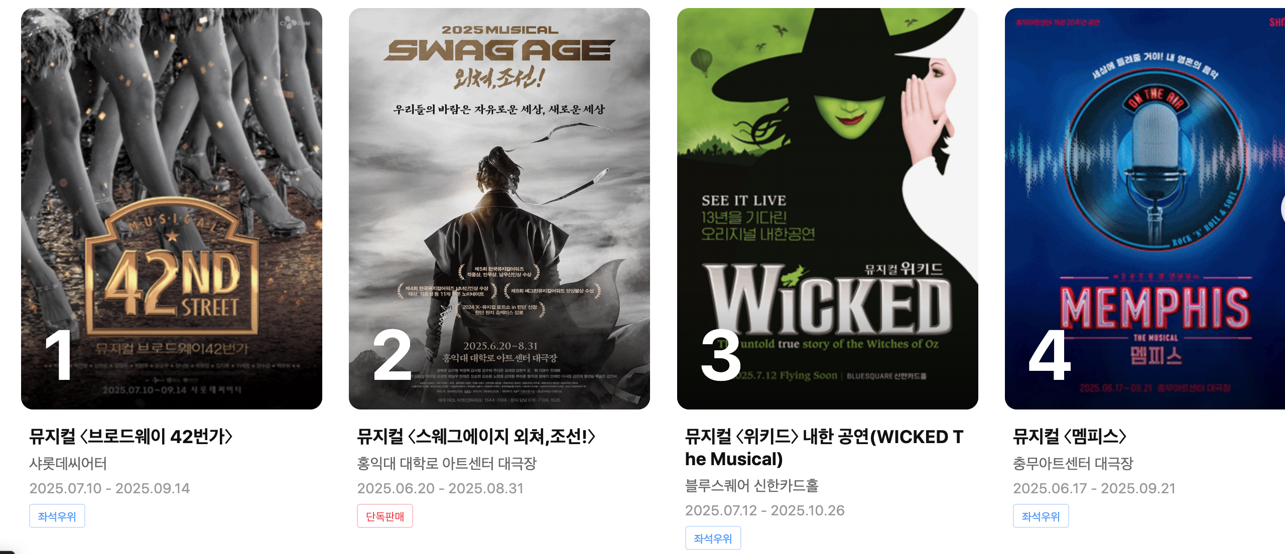 ※ 대중음악, 콘서트, 산업 박람회 등은 제외됩니다.