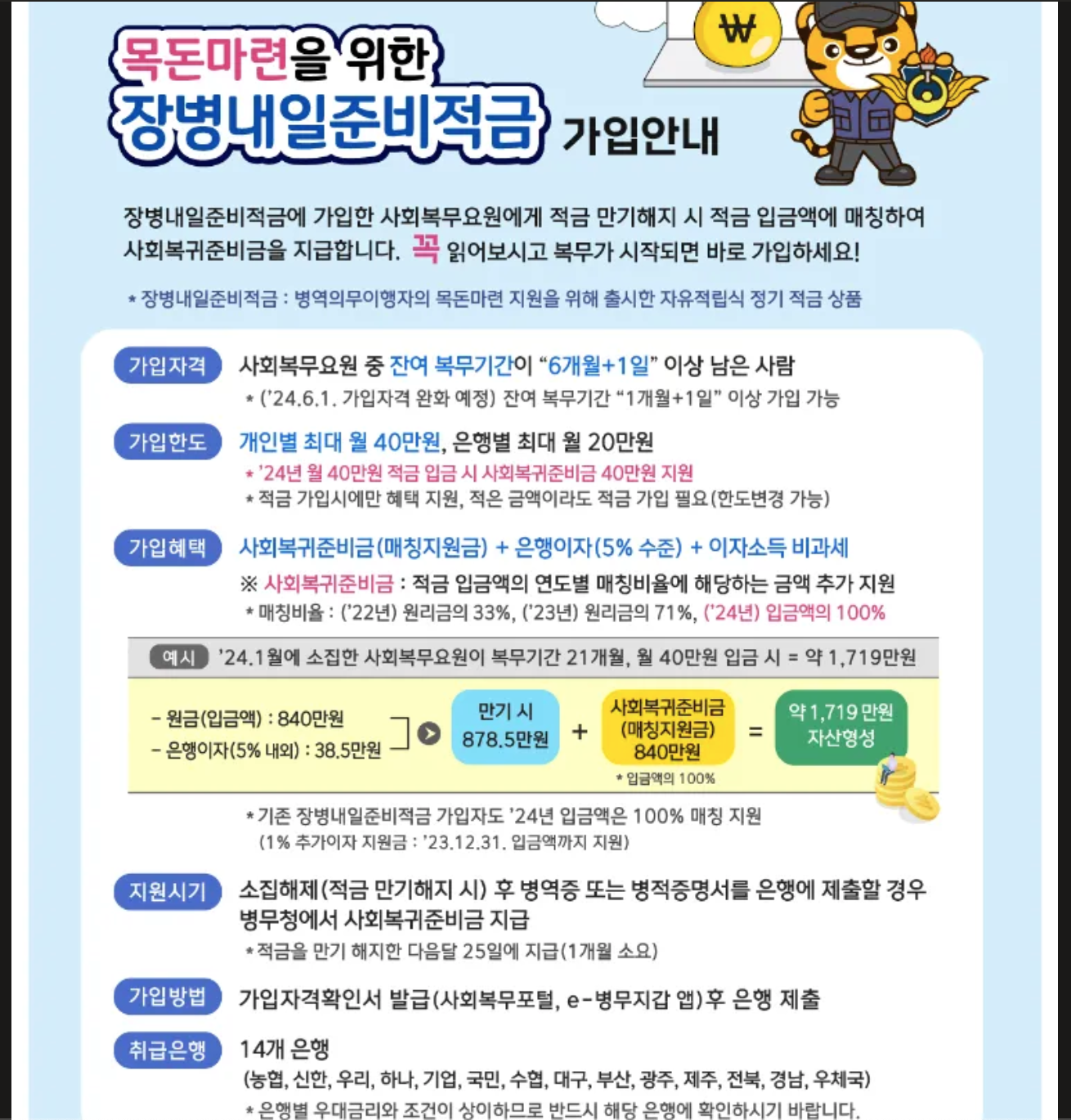 2. 가입은 복무 중에만 가능하며, 전역 6개월 전까지만 신청 가능
