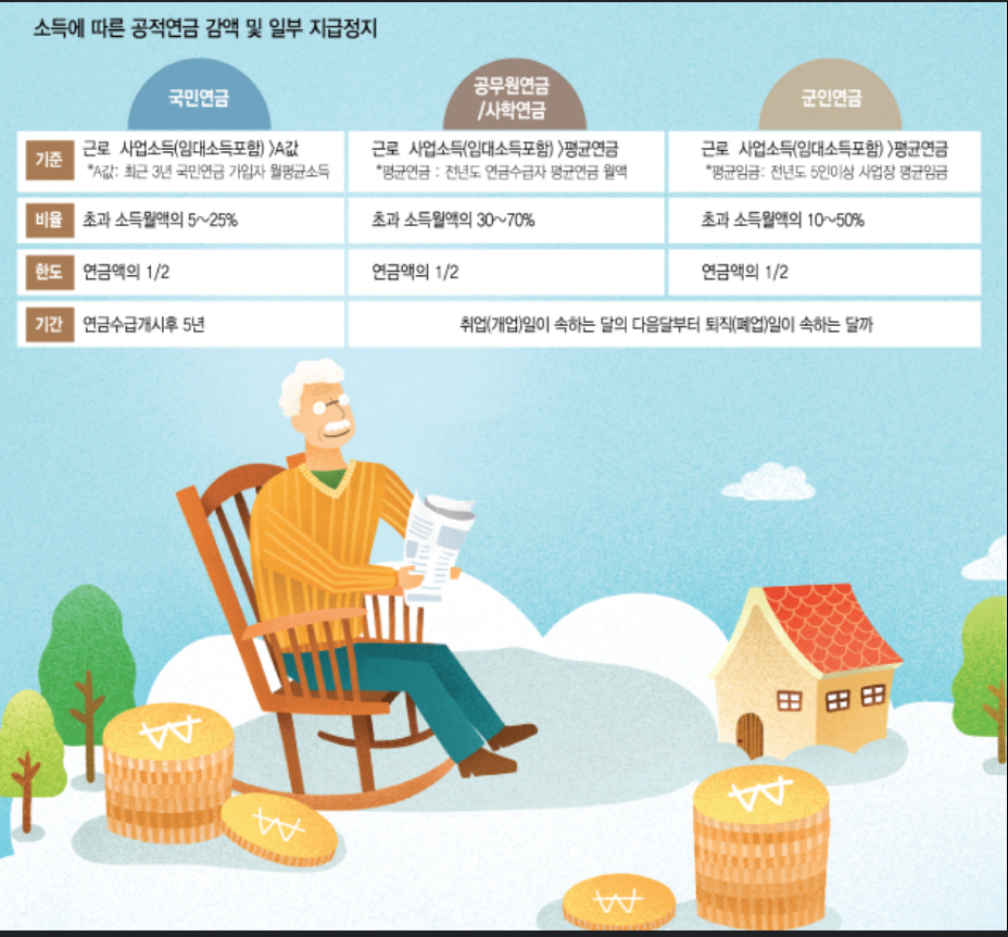 - 내년 변경: 초과 금액이 200만원 미만이면 연금 삭감 없음 → 월 508만9062원 이하 소득자는 연금 삭감 없이 수령 가능.