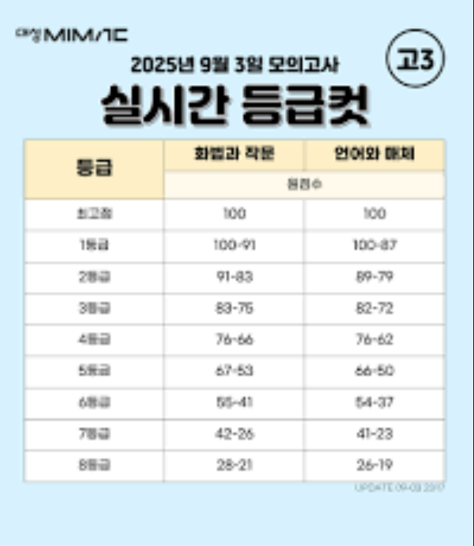 이번 9월 모의고사는 등급컷, 수학 난이도, 국어 난이도를 기준으로 본인의 실력과 학습 전략을 점검할 수 있는 중요한 시험입니다.