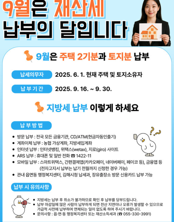 매년 9월이면 재산세 납부 시기가 다가옵니다.