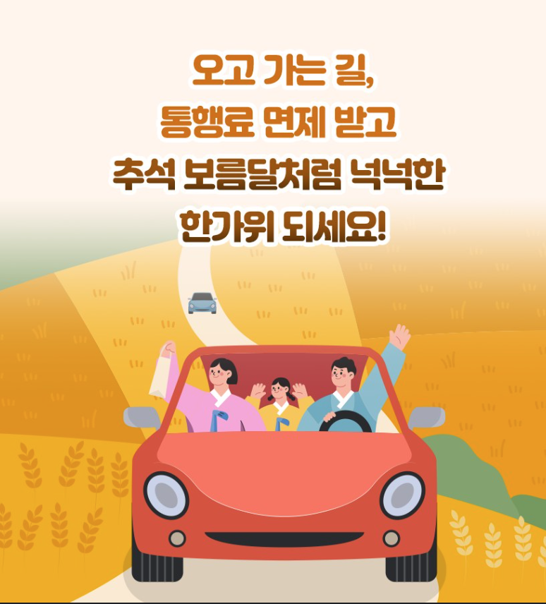 톨게이트 무료 혜택을 잘 활용해 안전한 귀성·귀경길 되시길 바랍니다.