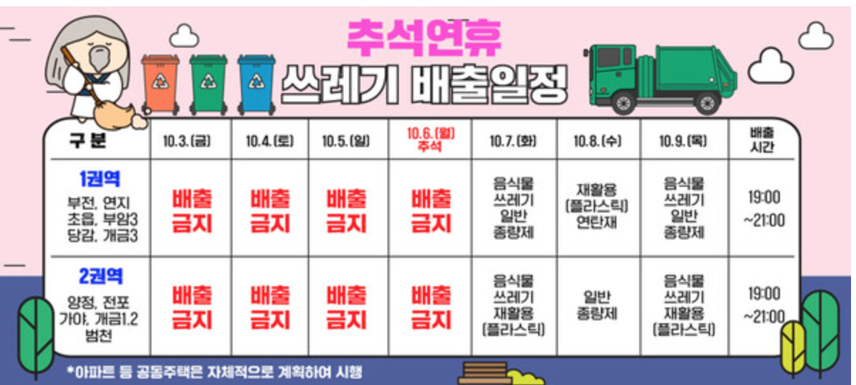 - 10월 5일(일) : 전 자치구 배출 금지 (추석 당일 포함)