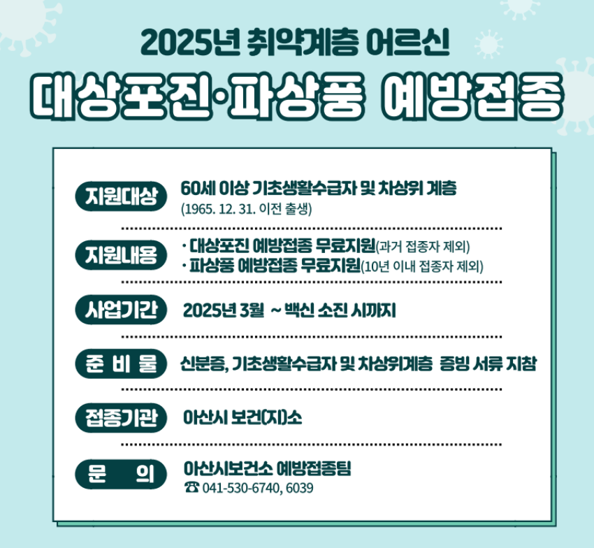 다만 면역력이 급격히 떨어지는 시기에는 나이에 상관없이 접종을 고려할 수 있습니다.