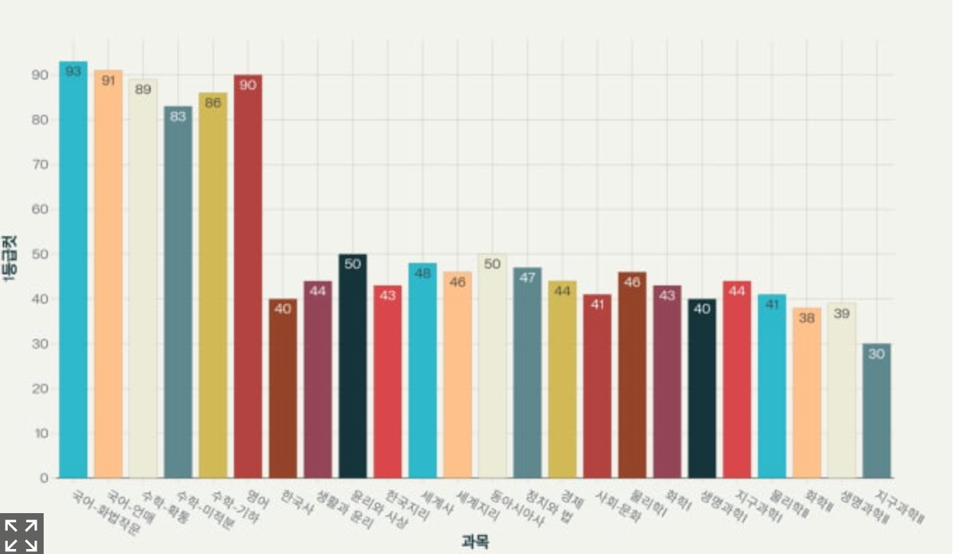 | 과목 | 10모 1등급컷 | 9모 1등급컷 | 변화 |