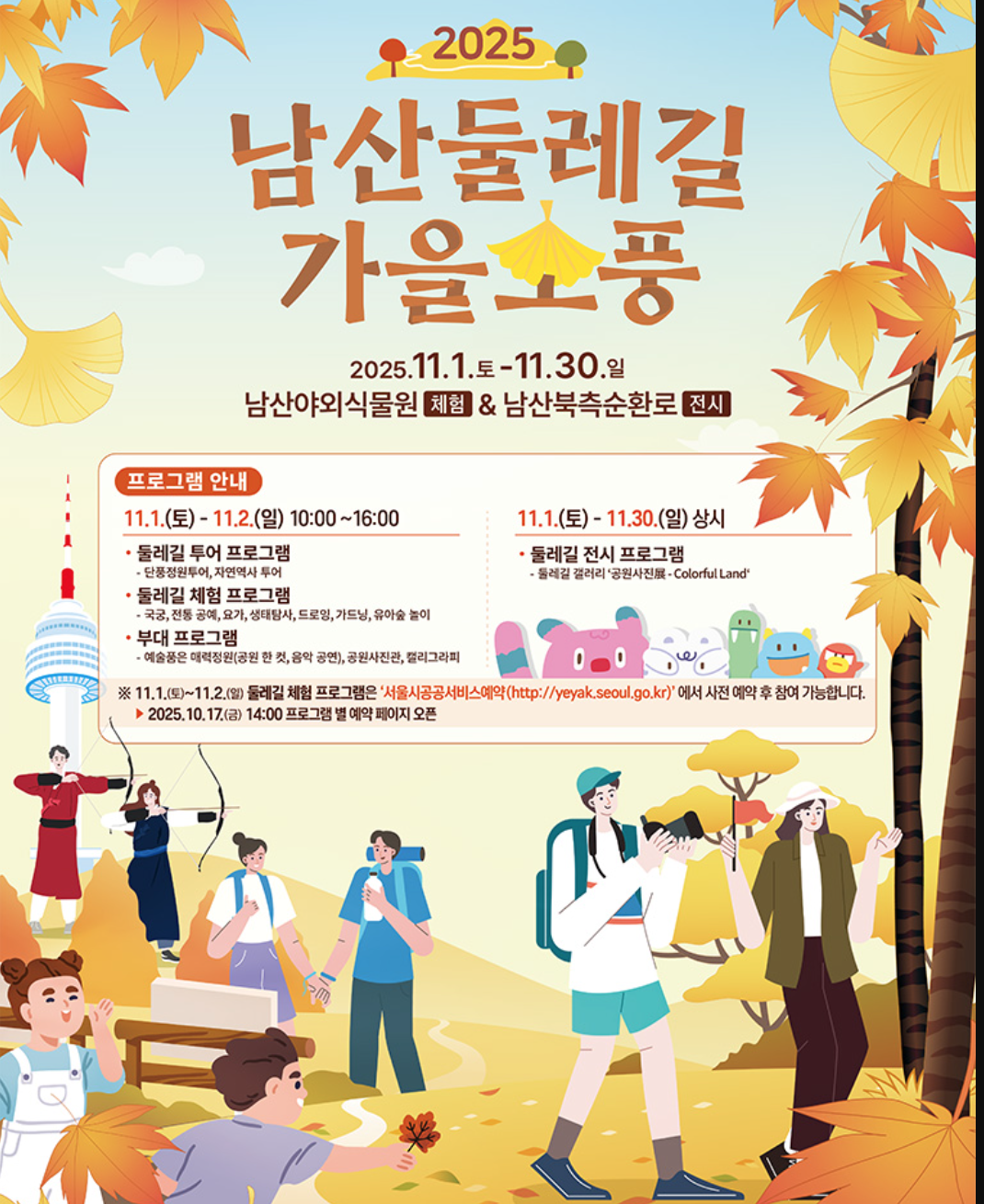 남산 둘레길 코스|가을소풍 프로그램 가족과 함께 즐기는 체험·전시·예약 총정리