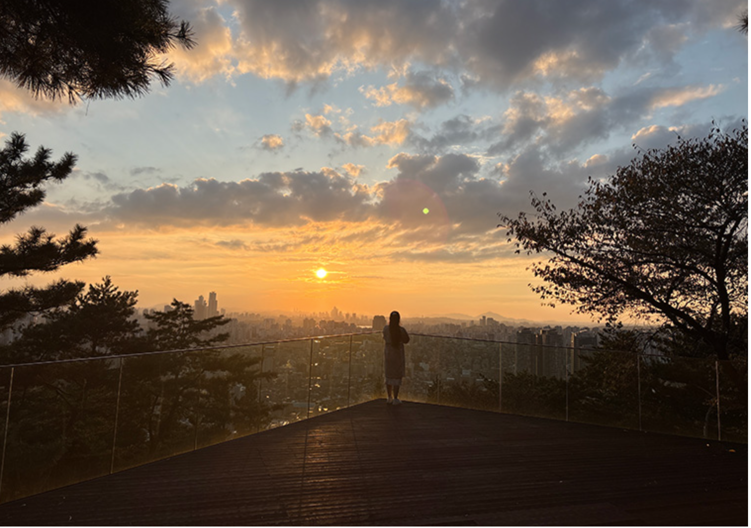 데크 난간 너머로 서울타워가 완벽한 비율로 잡히는 구간이 있습니다.