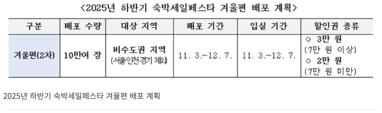 겨울철 강릉, 여수, 제주, 통영 등 비수도권 여행지 숙박 수요가 높아질 시점이기 때문에 숙박할인권을 활용하면 평균 20~30% 정도의 체감 할인 효과를 누릴 수 있습니다.