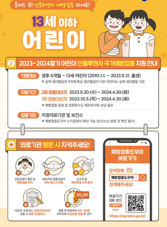 - 어린이: 생후 6개월 이상 ~ 만 13세 이하 (2009.1.1. 이후 출생자).