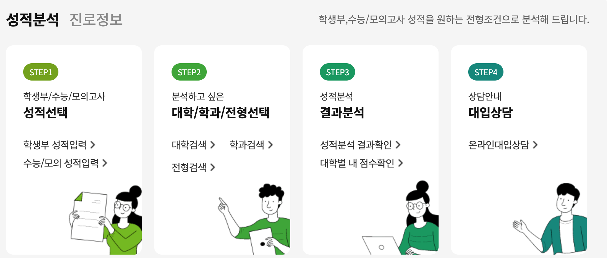 - 확인 방법: 성적 입력 → 예상 등급 확인 → 정시 지원 분석