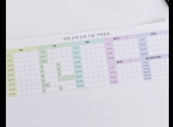 가채점표는 수험생이 스스로 채점한 점수를 정리한 비공식 성적표입니다.