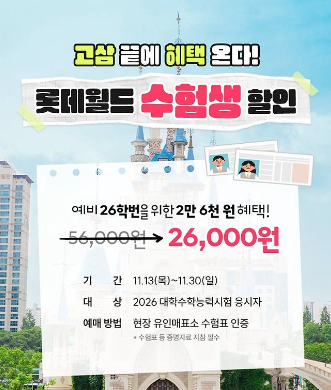 - 롯데시네마 : 수험표 지참 시 영화 관람권 균일가 7,000원.