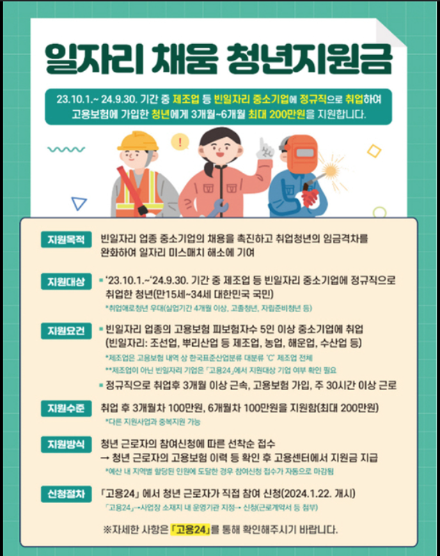 - 중소·중견·소상공인 사업장 근무자(사업장별 요건 확인 요망).