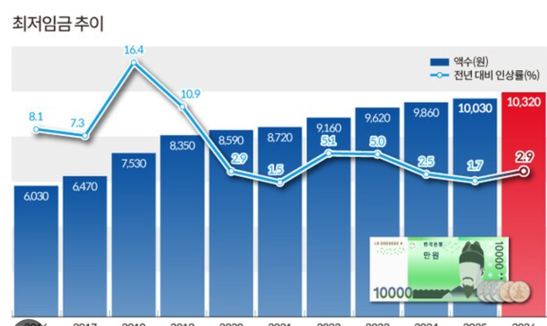 2026년부터 적용되는 최저임금이 시간당 10,320원으로 확정됐습니다.