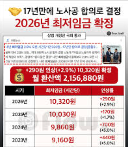 ▶ 2026년 최저임금 공식 발표 내용 바로가기
