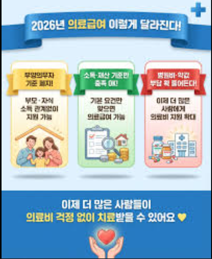 특히 과거 부양비 기준 때문에 의료급여 신청에서 탈락했던 경우라면, 2026년 이후에는 다시 대상이 될 수 있는 여지가 생깁니다.