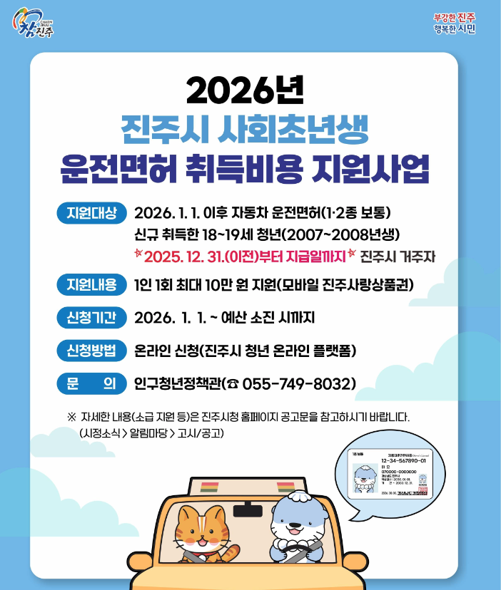 운전면허 취득을 통해 취업 기회를 확대하고, 이동 편의성을 높일 수 있어 청년층에게 실질적인 혜택을 제공합니다.