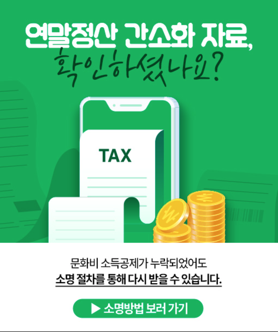 대한민국 근로소득자라면, 누구나 누리고, 연말정산 돌려받자! 문화비 소득공제